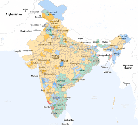 This is what a (tidal) wave looks like (map generated at 4pm IST). BJP wins a seat in Tamil Nadu (another seat won by partner PMK) while the DMK is rubbed out. BJP wins two seats in West Bengal, CPI(M) does the same. BJP wins Udhampur against “son of the soil” Ghulam Nabi Azad of the Congress.