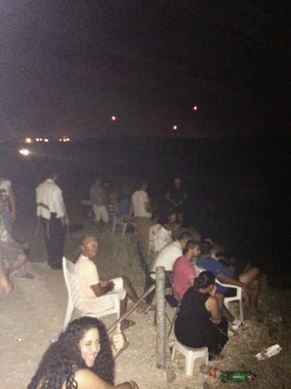 on the hilltop outside Sderot…“Clapping when blasts are heard.”…..more than 50 people who had