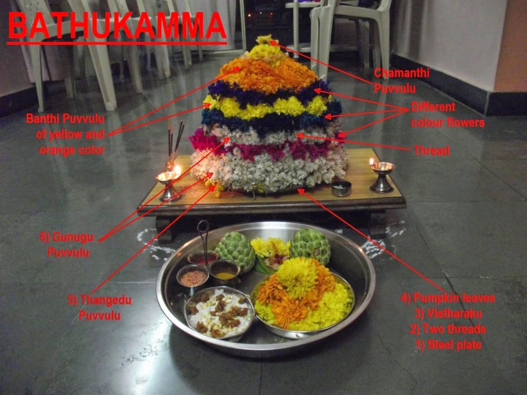 Bathukamma is a celebration of women (see below), a festival of flowers in the honor of Mother Goddess.