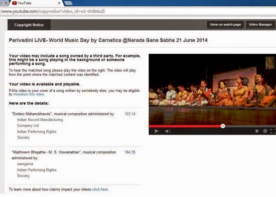 for a recording it uploaded, as a music label claimed the Thyagaraja