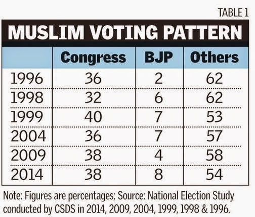 Even that is not quite the full picture. The BJP probably got a huge chunk of Shia votes (and Bohra, Ahmadi, Ismaili and other minority Islamic sects) based on the enemy of my enemy is my friend principle. In Lucknow and in Varanasi (the constituency of the Leader) the Shia vote may have played a significant role in boosting the vote margin (Rahul Gandhi was discredited in part because his winning margin went down).