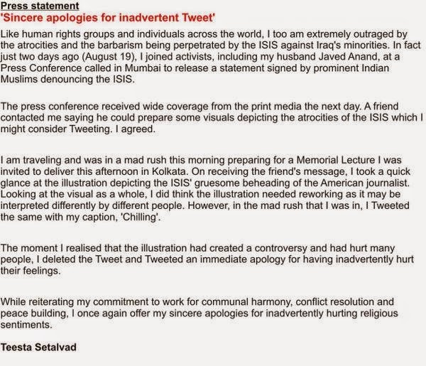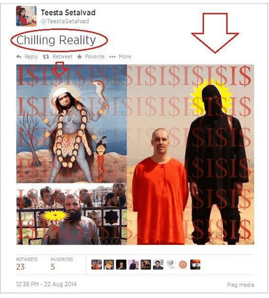 terrorist beheading a journalist. This act by Setalwad has hurt the