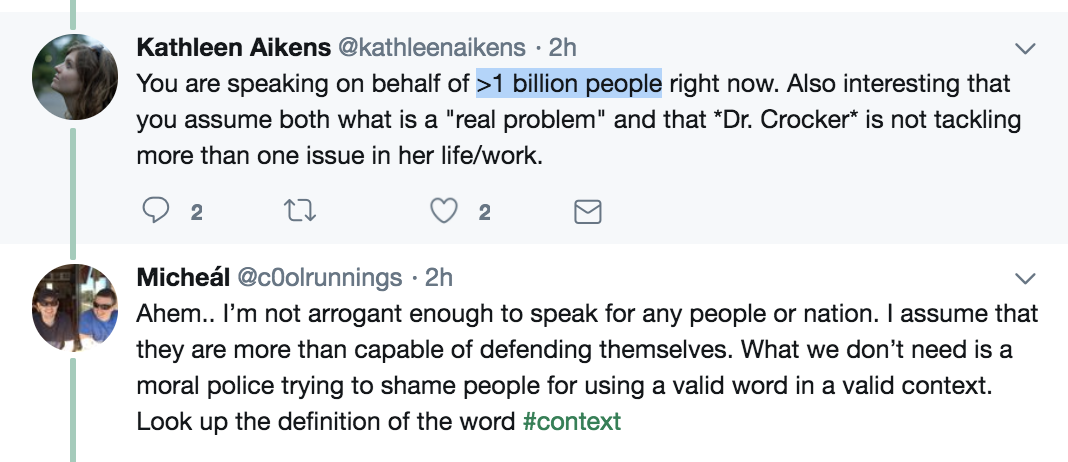 The main point is the humanities are just as hard as whatever it is you do. Don’t invade our turf without actually doing your homework. I am not going to get into this with you right now. Do your homework and then perhaps we can talk.