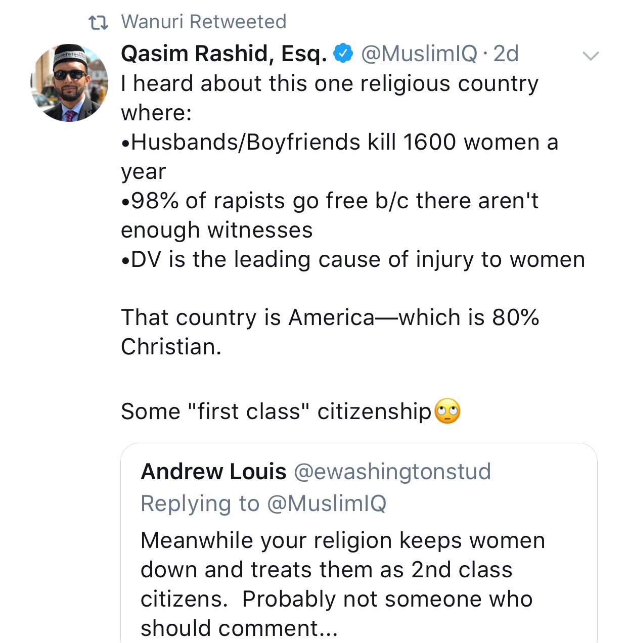 4) America and the whole world has a huge problem with male misogyny and I commend Qasim Rashid for bringing attention to it