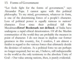 “Chin o Arab Hamara, Hindustan Hamara/ Muslim hain hum, sara jahan hamara” – This kind of airy fairy thinking does not lead to productive Nation building or State building or any institution building or any development in science or industry or better relations between man and man , or man and woman or between nations.