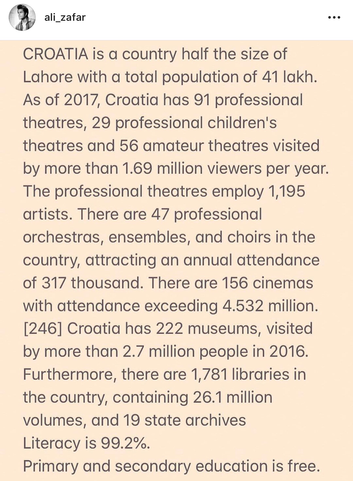 Ali Zafar makes a very good point about the presence of the arts in Croatia. Unfortunately, General Zia’s Islamization basically killed Hindustani Classical Music in Pakistan (it was too “Hindu”). The All Pakistan Music Conference continues on in Lahore with monthly programs, but it is a struggle. We do still have Ghazal and Qawwali though.