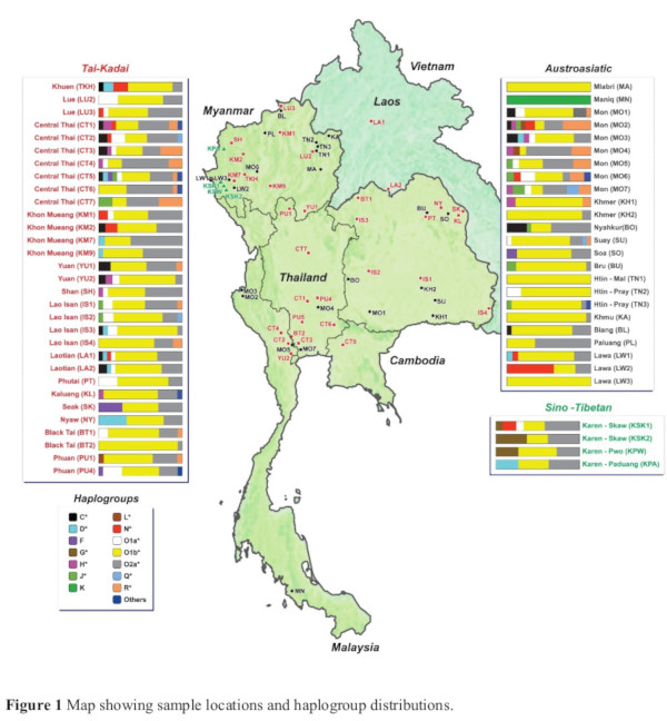 There is also significant Indian paternal ancestry associated with non-Brahmin upper castes (haplotypes J, L and Q) in both Burma and Thailand.