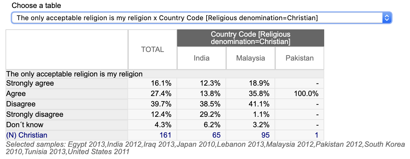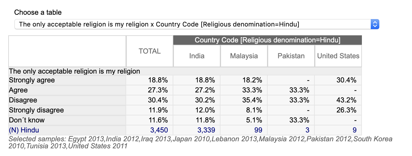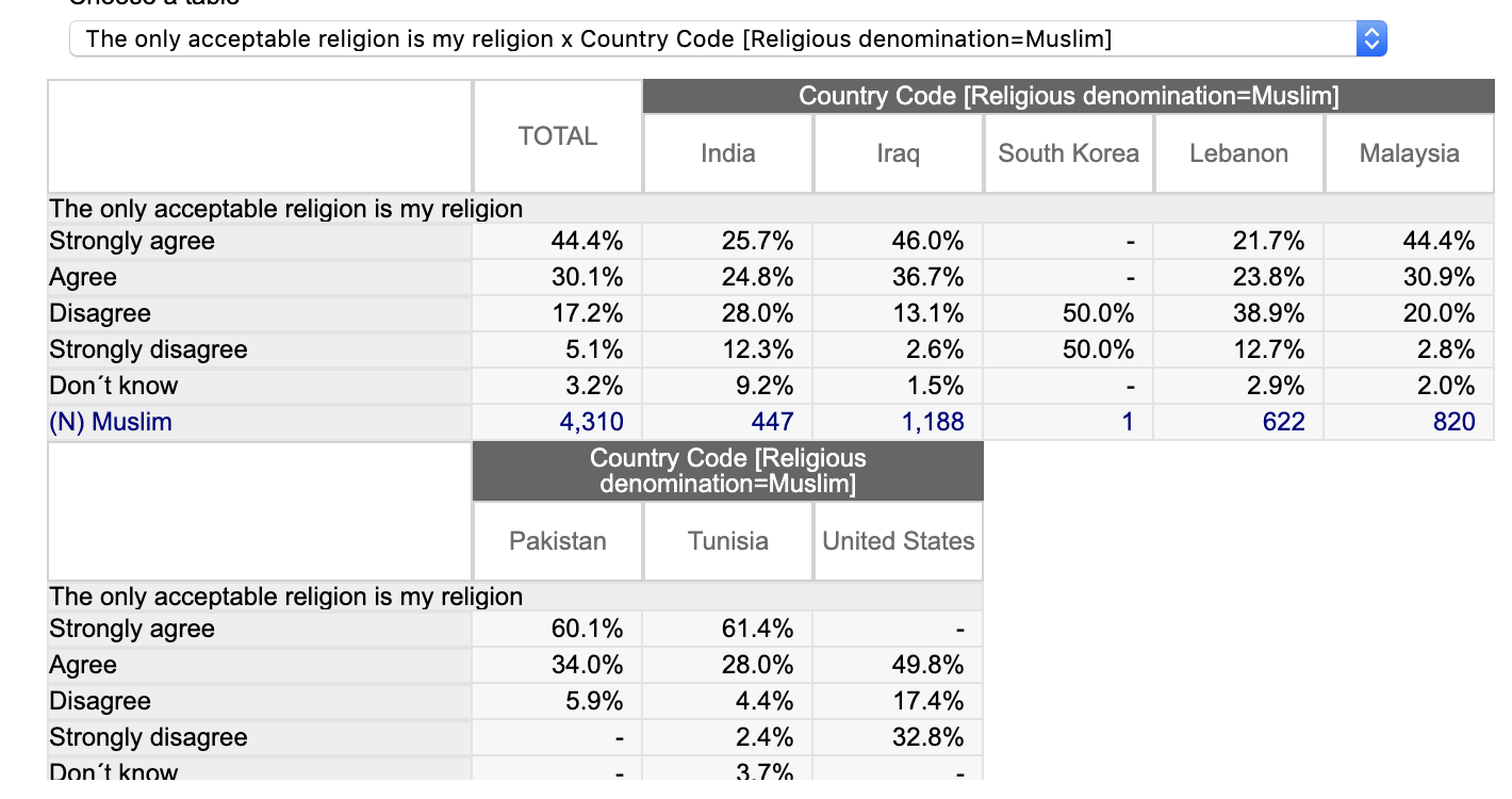 There is a lot of talk on this weblog. Probably because this is South Asian focus, and we tend to be a loquacious people on the whole (some more than others). But I decided to look in the World Values Survey in regards to the question of whether believers believed their religion was the only acceptable religion.