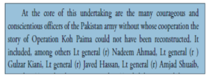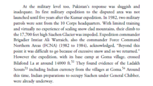 Now our pro establishment author Nasim Zehra fails to analyse or point out that Siachen was one of the greatest intelligence failures in Pakistanâs military history where both ISI and Military Intelligence failed in doing their basic jobs. We expected more intellectual honesty from a book so much over-projected and elevated to the level of a masterpiece. On page 41 Nasim Zehra again gets her facts wrong when she claims that Operation Venus was conducted whereas in reality the operation was only planned and never conducted: — On page 42 Nasim Zehra fallaciously elevates Lt Gen Safdar to the position of Pakistan Armyâs 1 Corp commander, a position that he never held. How outrageous so called researchers and analysts can get with facts is mind boggling. For this imperial blunder our brilliant author Ms. Nasim Zehra cites no reference.