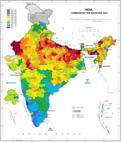 This map/data can be matched with this LiveMint Article about how India will have a highly staggered Demographic Dividend across different States.