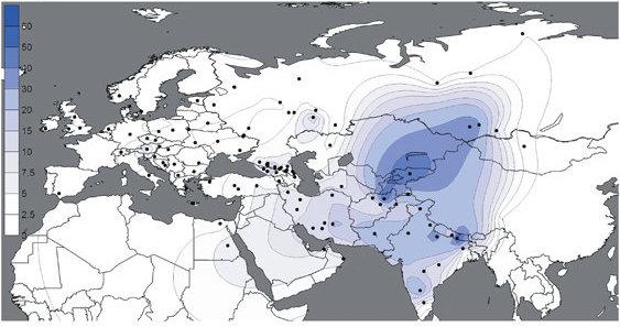 The Kyrgyz if I seem to recall have a high R1a frequency but with some of the lowest diversity indicating that its just a founder effect. I remember people saying they almost all descend from the same line with a relatively recent TMRCA. They don’t seem to be descendants of. large number of Iranians but just the result of one Turkified Iranian lineage that got really lucky for whatever reason. Which is in line with their autosomal dna being mostly East Asian like. Same for the Altai region Turks. Its only Uzbeks and Turkmen in Central Asia who have significant Iranian admixture (as in slightly less than, equal to or even exceeding their East Eurasian Turkic admixture) but even then none of them are probably more than 60% Central Asian Iranian like.