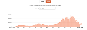 I do not frequent bars/clubs in general so i didn’t miss them much. However, I did miss spending time at the library and our nearby Barnes and Noble. If one were to look at the graphs of cases and deaths in the US, there are peaks around memorial day, 4th of July, Labor day, Halloween, Thanksgiving, Christmas and New Year. Around Christmas, close to a million people were flying every day in the U.S. Graphics from the Washington Post tracker.