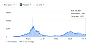 10. The curious case of Pakistan and India. Early in the pandemic, while COVID was running rampant through most of Europe, North America and South America, India and Pakistan had very few cases compared to their populations. While India has caught up with the rest of the world lately, Pakistan is still reporting less cases than any major city in the US per day. What is causing this divergence? There are many theories and until it is studied methodically, I don’t have a clear answer. Even people who got COVID in Pakistan, got a mild disease. Many people pointed to BCG vaccination as being semi-protective against COVID. Some commentators proposed immunity due to earlier sub-clinical viral infections. Are there genetic factors causing this? My hypothesis is that Pakistan is not as exposed to the outside world as lets say the United States is. Secondly, testing in Pakistan is at a much lower level than anywhere else. At one point last year, the state of Punjab, with a population larger than Germany, was doing close to 15,000 COVID tests a day. If you don’t test, you can’t diagnose. Cases in Pakistan and India, graphs from the Johns Hopkins dashboard.