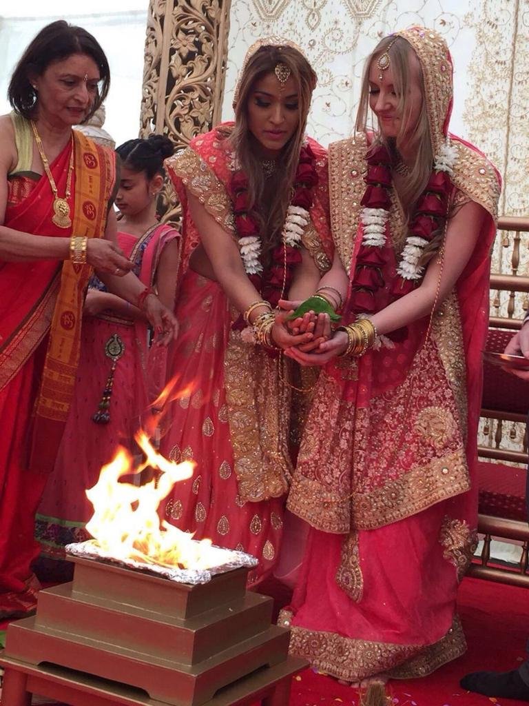 Hindu wedding ceremony for mixed raced lesbian couple in UK.