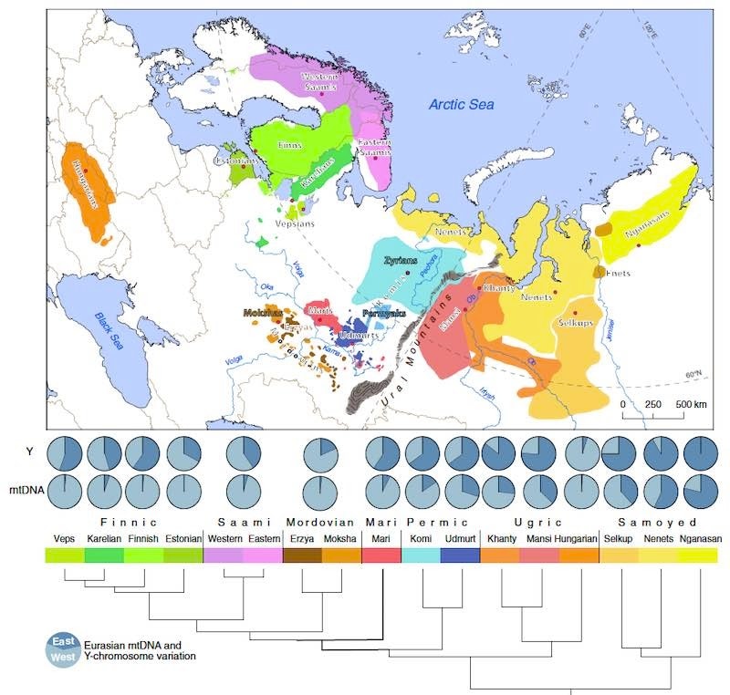 This is on my mind because the Uralic populations show the strong male-based spread of eastern Y chromosomes. Finns are 60% eastern on the Y and less than 1% on the mtDNA.