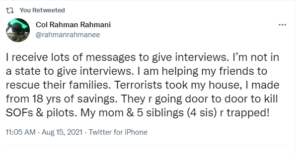 ^^ People trying to flee the country remain unmolested, and the Taliban has announced that they are “welcome to remain”, that they were “betrayed by the Americans”, and that they are now their “brothers” after said betrayal; “all is forgiven”.
