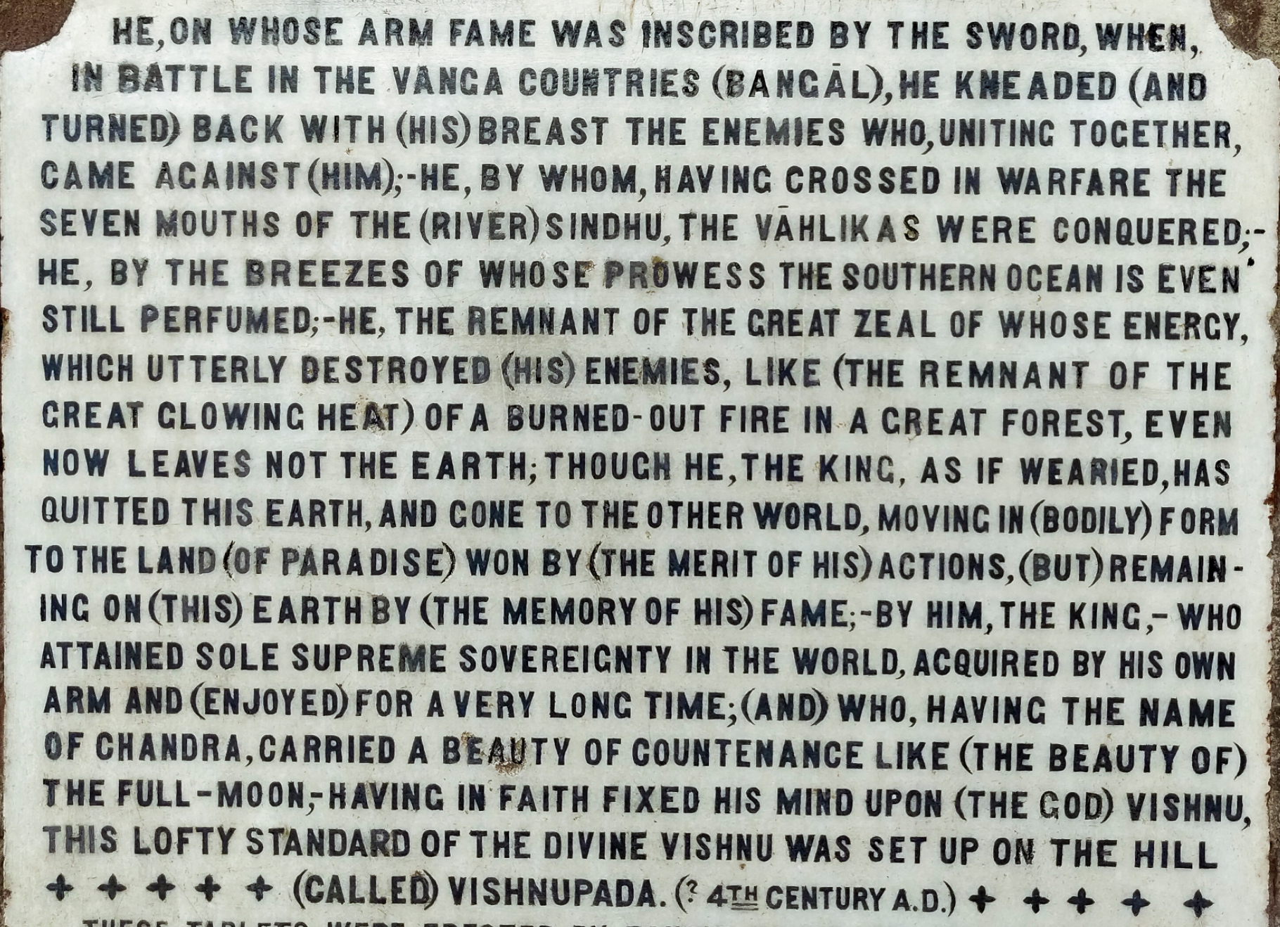 On the other hand, here is an inscription of Chandragupta I of the Guptas, inscribed on the famous Mehrauli Iron Pillar,