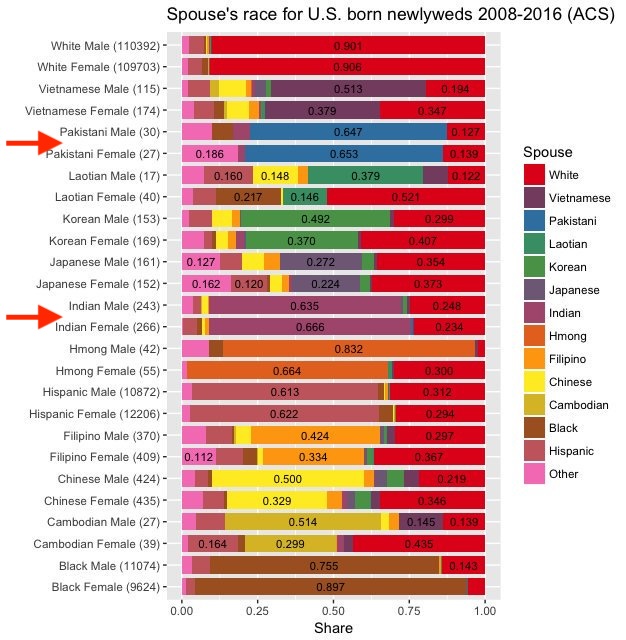 Outmarriage rates for US-born Indian and Pakistani Americans Razib Khan ยท February 3, 2024 ยท 1 comment From this post.