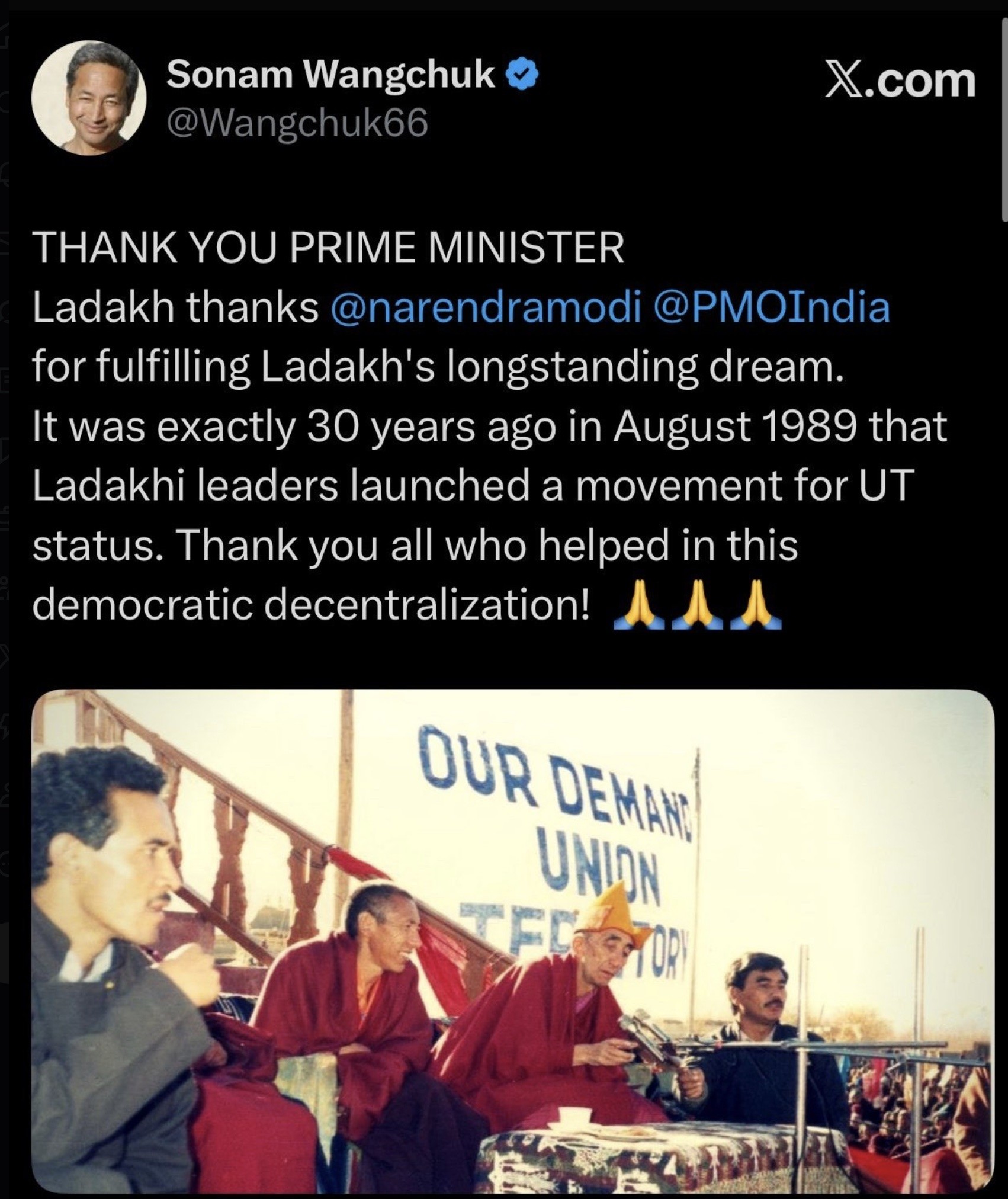 2019 – Sonam Wangchuk, super happy that article 360 was abrogated and Ladakh was made UT