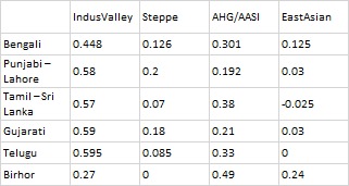 A recent WhatsApp exchange between GL and Sbarr captures a recurring Brown Pundits problem: how genetic data, textual tradition, and social history get collapsed into a single argument and then talk past one another. The immediate trigger was a table circulating online, showing ancestry proportions across South Asian groups; Indus Valley–related, Steppe, AASI, and East Asian components. The numbers vary by region and language group. None support purity. None map cleanly onto caste. That much is uncontroversial. What followed was not a dispute about the data itself, but about what kind of claims the data can bear.
