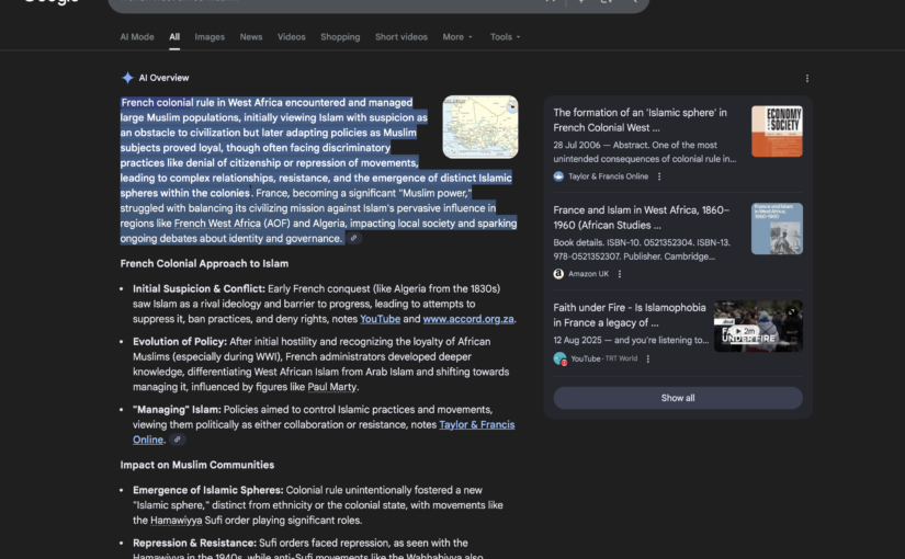 This matters because language sets moral defaults. If Islam is consistently framed as an obstacle, then surveillance becomes “management,” exclusion becomes “balance,” and repression becomes “order.” The past is not merely described. It is justified. Google cannot hide behind neutrality here. Choosing words is choosing sides. When Gemini repeats colonial euphemisms, Google is not observing history. It is endorsing a lens.