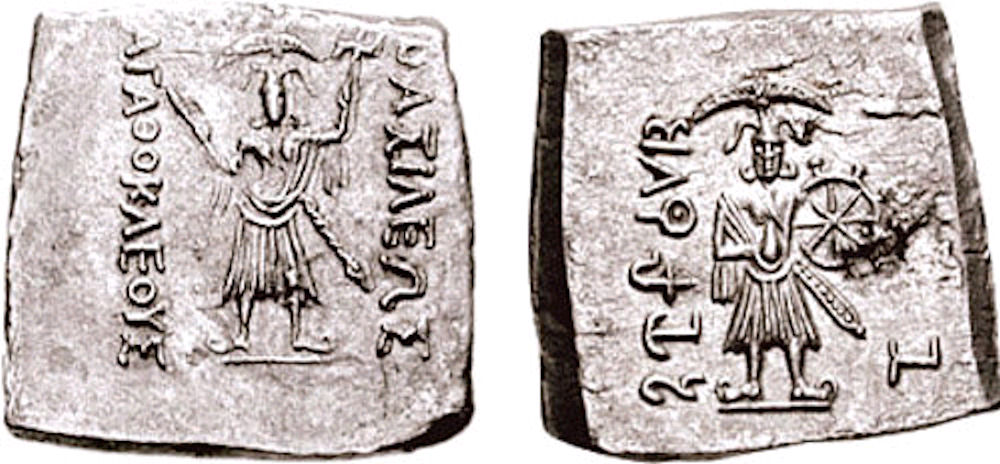 Gold coin of Chandragupta I with his wife Kumaradevi