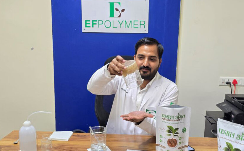 Gurjar’s firm EF Polymer (EF stands for eco-friendly) headquartered in Okinawa with manufacturing plants in Udaipur makes super absorbent polymers (SAP) from orange and banana peel that has the potential to help millions of small farmers in arid and water scarce regions across the world harvest better yields.
