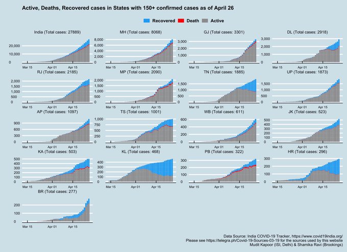 Huge regional differences. The two southernmost states, Kerala and Tamil Nadu have more people who have recovered than are active. This is a good sign.