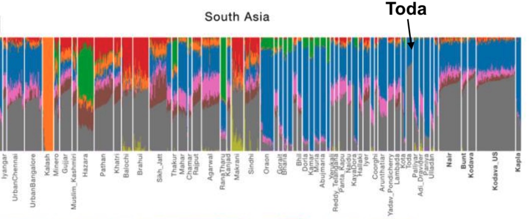 A new paper on Southwest Indian genetics highlights the Toda sample from Genomes Asia. People in the comments of this weblog have asserted this small southern tribe may have the most “Indus Valley Civilization” ancestry in the subcontinent. This is perhaps an exaggeration, but, looking at the admixture plots the Toda clearly have hardly any steppe ancestry, but a lot less “ASI” ancestry than their tribal neighbors, with the balance being something like the IVC ancestry.